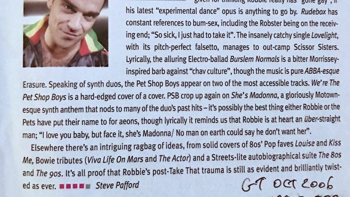 Twenty Years Ago Steve Pafford did Robbie Williams in the Rudebox review