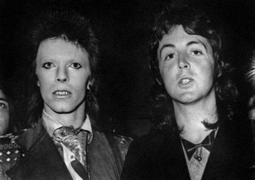 **David Bowie never let the truth get in the way of a good quote, and here he is with wacky Macca himself attending the premiere of Live And Let Die at Leicester Square on 5 July 1973; Roger Moore’s first film as Bond. Doesn’t he look thrilled.
