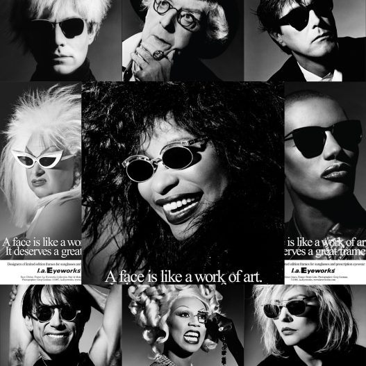 Since 1981, the brand’s signature portrait ad campaign, photographed by Greg Gorman, has featured an eclectic mix of more than 200 high-profile celebrities and cultural provocateurs—faces like Arnold Schwarzenegger, Dame Edna, Carly Simon, Quentin Crisp, John Waters, RuPaul and Iman— wearing Eyeworks glasses in an ever-evolving series of iconic black-and-white images, anchored by the prescient tagline