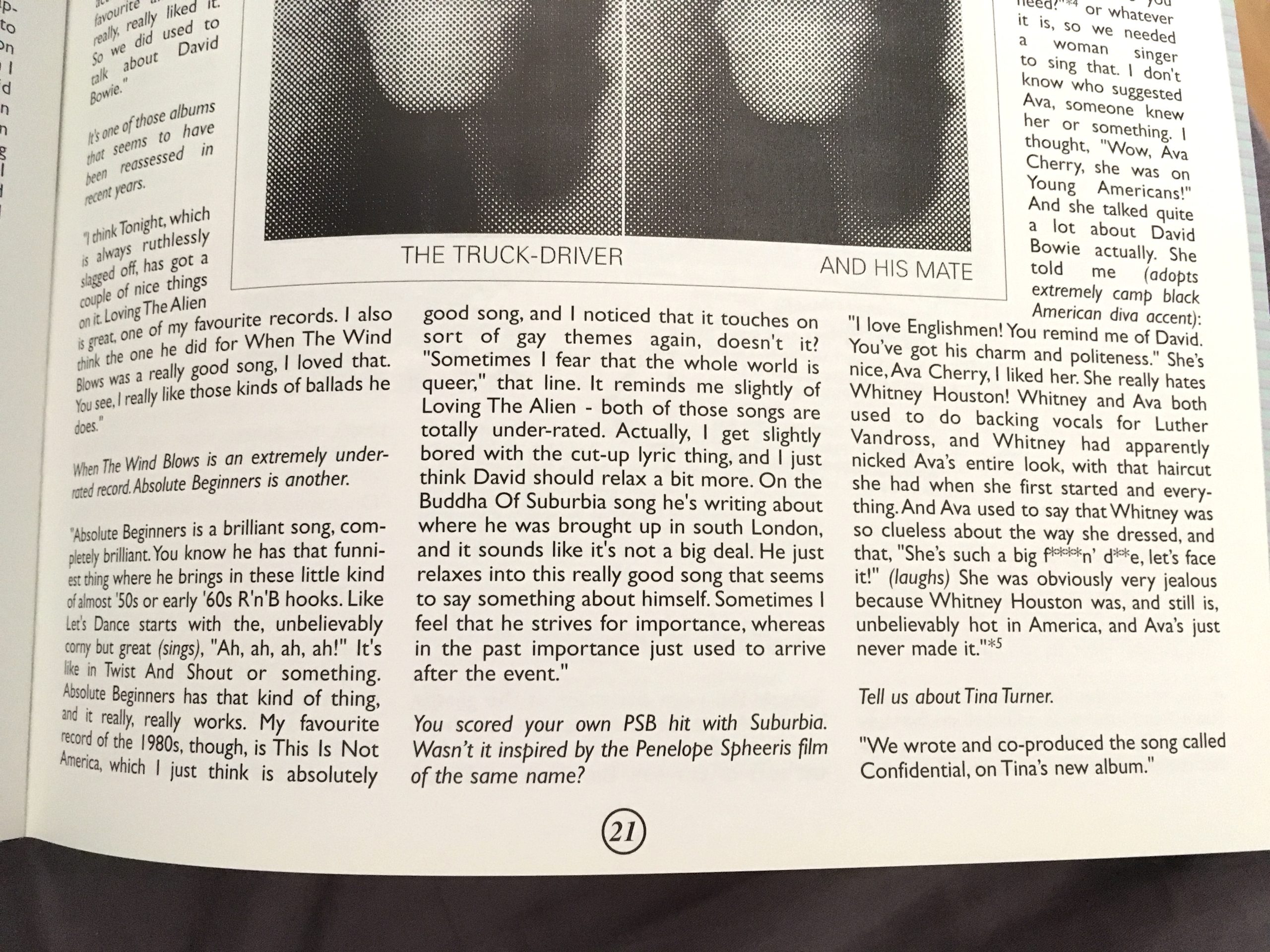 Lastly, a very minor preview of the time Neil Tennant chatted Bowie and Tina to that Steve Pafford guy